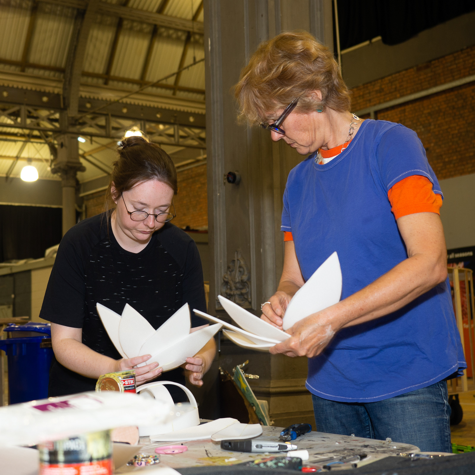Manchester City Council were keen to have publicity photos of the volunteers and community groups creating their floats and costumes for Manchester Day, assisted by professional artists. Event photographer: Mike Beard